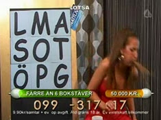 Eva Nazemson Vomits On Live TV - Eva Nazemson throws up during a Swedish phone-in game show and returns after a few seconds offscreen, blaming period pains on making her feel sick.